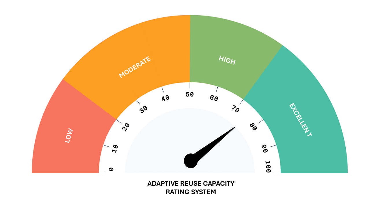 Our world-first traffic light rating system acts as a sustainable comparison tool to assess your buildings Adaptive Reuse Capacity (ARC).